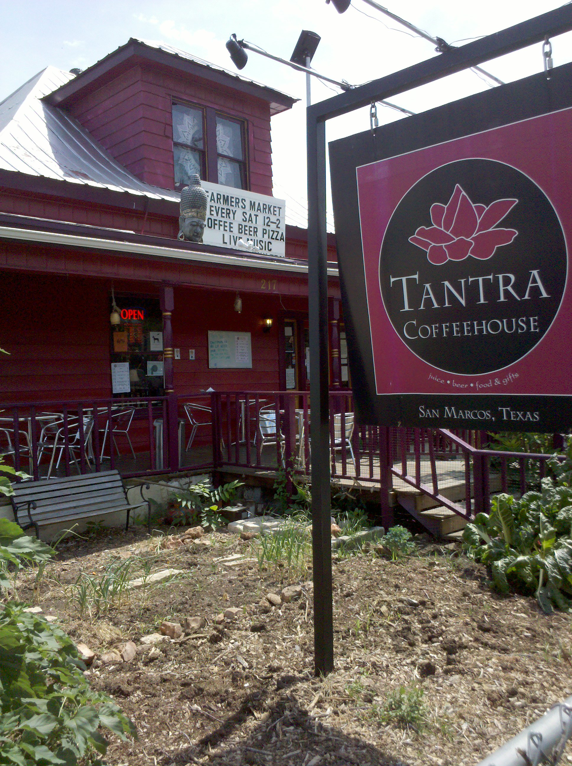 This is where I went in to take off my clothes. Sticky icky business clothes and put on suitable yoga pants. The color caught my eye first. I was headed down Ranch Road 12 out to Houston, and sweaty. The greenlight dangled above the street, bouncing on electric wires, where I turned left, a bit of pink catching the corner of my eye. Everyone drove Fords, and I was wearing linen and heels. If you’re stuck in Texas, you go where it says Tantra and it says Coffee, and you take off your clothes.