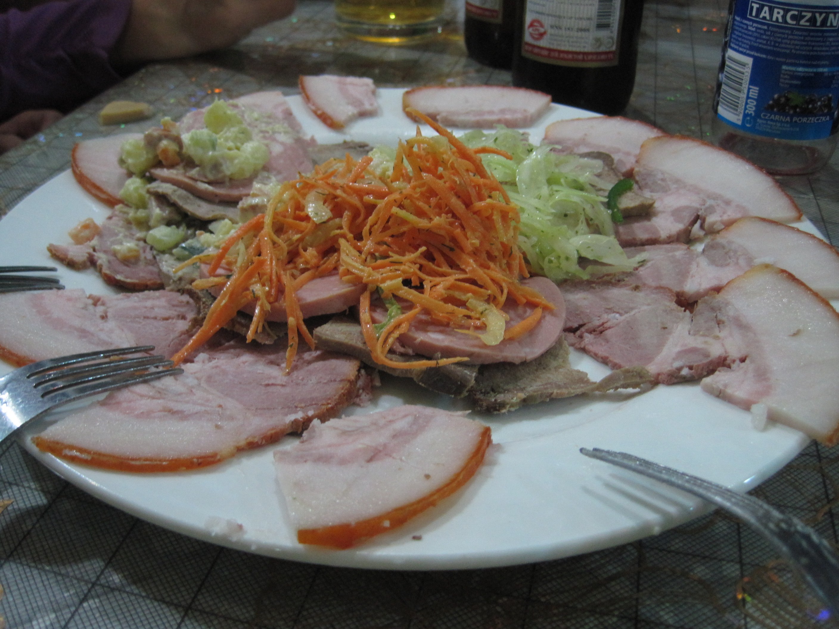 This was my first meal in Mongolia. I wasn’t really sure what it was, but this really nice Mongolian kid named Tolgi, who was studying to be an English teacher and who had just acquired his driver’s license despite having failed the test, said it would be a “meat plate with salads.” I admit it, he did tell me there would be beef tongue, but since the American couple and a few others said they’d kick in, we ordered it. To celebrate that Russian bureaucracy had finally passed us through the border after an agonizing six hours of nothing – absolutely nothing – Scott, my new Canadian friend, and I also ordered a shot of Mongolian vodka. Everyone else had beer.