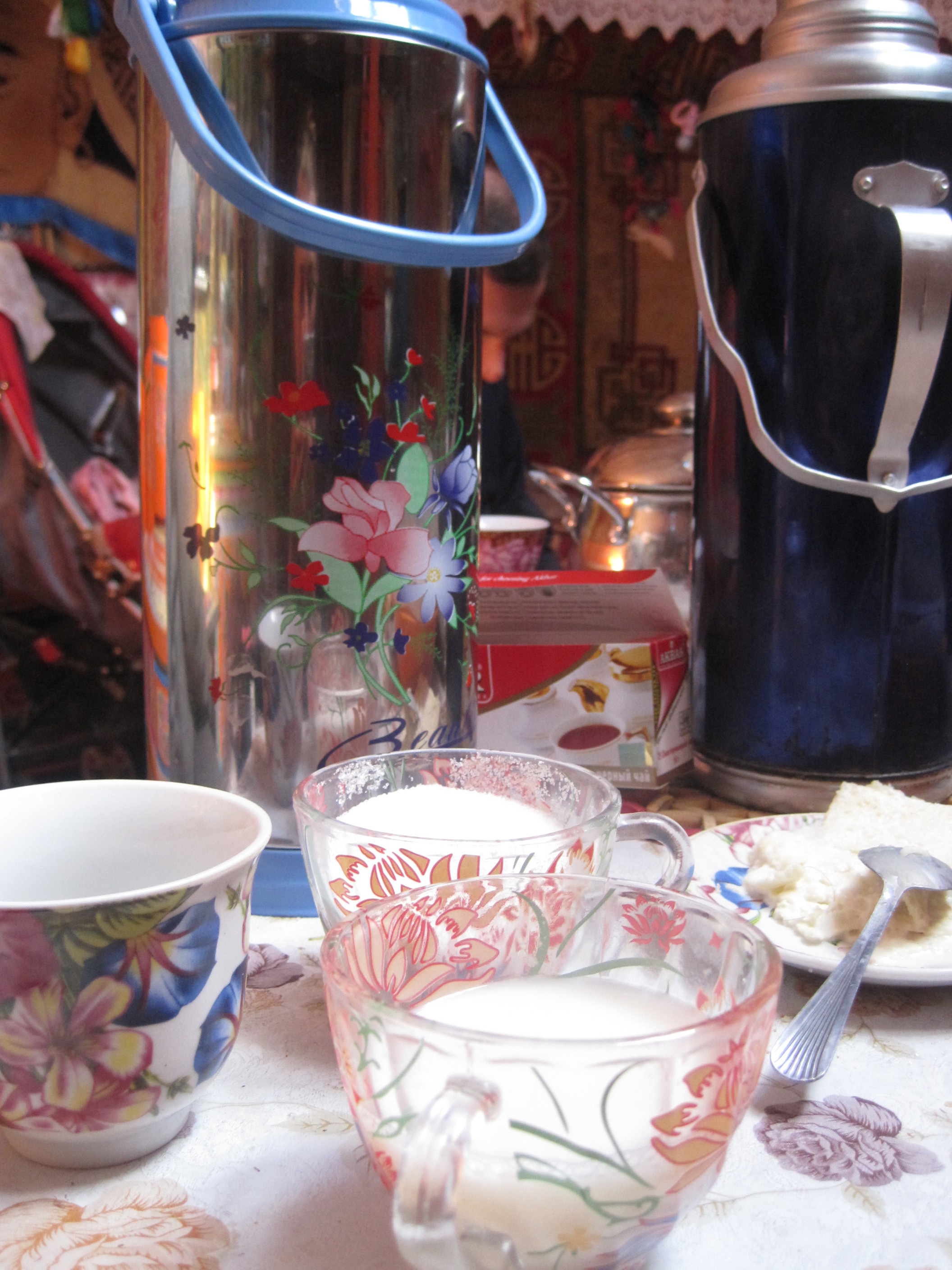 The leftover milk is used in milk tea, which is more or less half-water and half-milk, a scant sprinkle of tea leaves, and a healthy dose of salt. It’s incredibly warming on a cold day on the steppe, and the salt feels like it is replenishing lost electrolytes. I’ve grown quite fond of milk tea.